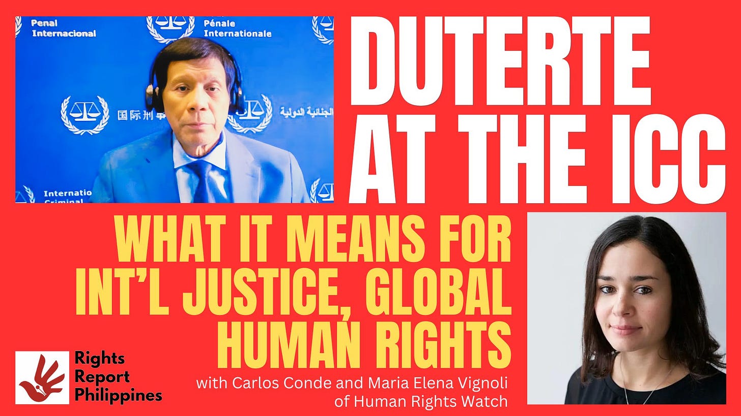 In this excerpt of a video conversation with Rights Report Philippines’ Carlos Conde, Maria Elena Vignoli, senior counsel at the international justice program of Human Rights Watch, expounds on the significance to the world of the case against former Philippine president Rodrigo Duterte at a time when the International Criminal Court is in the crosshairs of some of the world’s most tyrannical and repressive regimes.